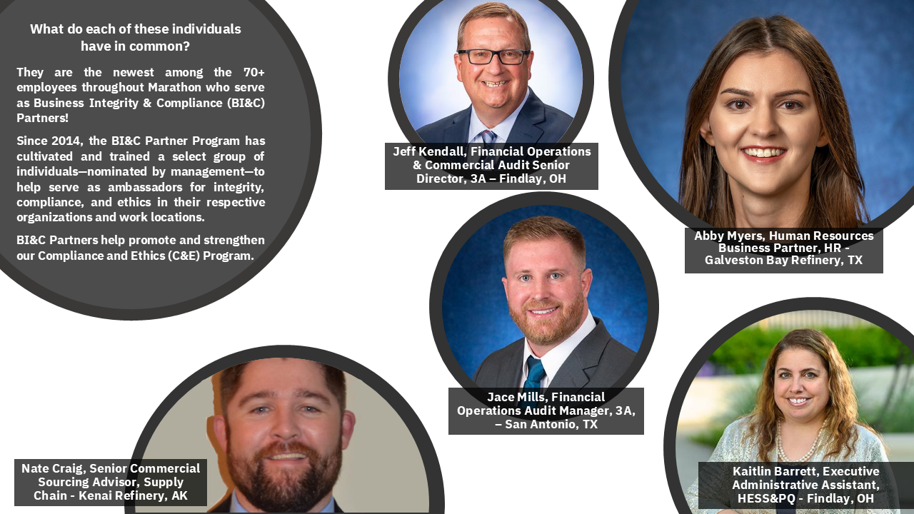 Business Integrity & Compliance and our Business Integrity & Compliance Partners, located throughout the company, have a week full of giveaways, fun activities and prizes planned. Be sure to take a moment to participate in the festivities and to complete our Business Integrity Poll to let us know how we are doing! Your candid feedback will help ensure we are delivering on our commitment to compliance and ethics at MPC. Complete the Poll between now and November 13 to enter for a chance to win 100 Awardco points. Recipients can redeem their points for eligible items through the Awardco portal, including gift cards, concert tickets, hotels and more.